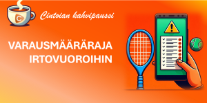 Onko irtovuoroille kova kysyntä? Haluaisitteko tarjota asiakkaille tasapuolisemmat mahdollisuudet varata vuoroja? Voitte asettaa varausjärjestelmäänne varausmäärärajoitukset siten, että asiakkaalla voi olla vain tietty määrä irtovuoroja tulossa. Rajoituksen voi tehdä varausten määrän, yhteiskeston tai molempien mukaan. Kun asiakkaalla on suurin sallittu määrä varauksia, voi hän varata seuraavan irtovuoron vasta, kun edellinen vuoro on pelattu. Tee näin: Huom! … Jatka artikkelin Tasapuolisempaa varaamista lukemista
